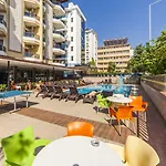 Gelegen op alleen 1 km afstand van het Cultureel centrum van Alanya, dit 3-sterrenhotel is binnen het bereik van het Alanya lunapark. Er is een privé strand op minder dan 350 meter afstand van Kleopatra Ada Beach Alanya. Natuurliefhebbers zullen de nabijheid van Kleopatra plaji 17 waarderen, dat binnen 5 minuten wandelen ervan ligt. Voor sportliefhebbers biedt de accommodatie in Alanya de nabijheid van Alanya Milli Egemenlik Stadion op 6 km afstand. De bushalte Dinek C-04 bevindt zich niet ver van dit hotel met 40 kamers.